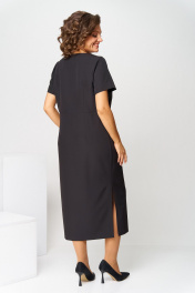 Комплект женский относится к торжественной нарядной одежде. Комплект женский 2-х предметный жакет и платье. Жакет полуприлегающего силуэта с фигурным низом, длиной до линии бёдер. Перед с 2-мя отрезными рельефами и 2-мя настрочными листочками на уровне линии талии. Спинка со средним швом. Горловина с V-образным вырезом с цельнокроеным воротником. Застёжка центральная бортовая на 1-ну петлю и 1-ну пришивную пуговицу. Рукав втачной, 2-х шовный, длиной 3/4, с разрезом внизу локтевого шва. Жакет на приточной подкладке. Жакет с плечевыми накладками. Платье женское полуприлегающего силуэта, длиной до середины икры. Платье отрезное по линии талии. Верхняя часть переда с 2-мя отрезными бочками; нижняя часть переда с 2-мя таллиевыми выточками. Шов соединения частей переда по линии талии декорирован термо тесьмой. Спинка верхняя часть с 2-мя таллиевыми вытачками; нижняя часть спинки с 2-мя таллиевыми вытачками. Боковые швы с разрезами. Горловина круглая обточная без воротника. Застёжка на потайную тесьму-молнию в левом боковом шве платья. Рукав втачной, короткий одношовный. Платье без плечевых накладок. Длина спинки жакета 64 см, длина рукава 45 см. Длина спинки платья 120 см, длина рукава 21 см