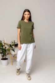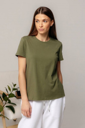 Майка зеленая классическая из хлопка с круглым вырезом Romgil 624ЛХТЗ светлый_хаки