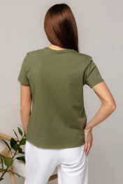 Майка зеленая классическая из хлопка с круглым вырезом Romgil 624ЛХТЗ светлый_хаки - фото 4