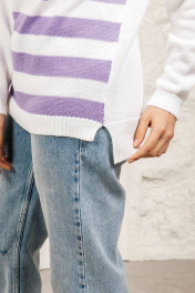 Демисезонный хлопковый джемпер белый легкий Romgil 680ХТЗ белый,сиреневый