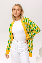 Кардиган с принтом из трикотажа в ярком стиле Romgil 826ПТЗ солнечно-желтый,ярко-зеленый,белый