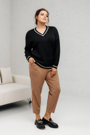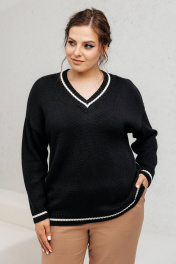 Черный двусторонний классический джемпер из шерстяной пряжи Romgil 935ШТЗ черный,молочный