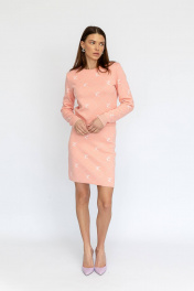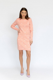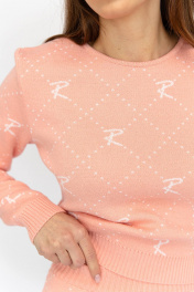 Мягкий костюм из хлопкового вязаного трикотажа Romgil РВ0019-ХЛ2 розовый персик, белый
