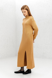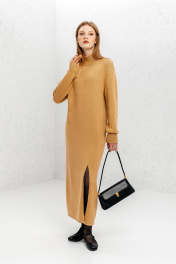 Длинное вязаное платье с разрезом. Уютное и теплое платье из мягкого трикотажа с шерстью и воротником-стойкой. Прямой силуэт позволяет скрыть недостатки фигуры и подчеркнуть достоинства. В нашем платье Вы будете чувствовать себя комфортно и защищенно. К тому же, платья Romgil, как отличные базовые элементы гардероба, легко сочетается в повседневном, офисном и классическом стиле. Идеально подходит для повседневной носки. Платье приятное к телу и легкое в уходе, после стирки - не линяет, не изменяет форму. Для того, чтобы трикотажная одежда радовала вас как можно дольше важно обратить внимание на уход за ней: стирать при температуре не выше 30 градусов в щадящем режиме, сушить в горизонтальном положении, гладить в режиме отпаривания, появившийся пилинг удалять с помощью специальной машинки._x000D_