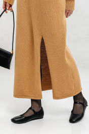 Демисезонное платье с разрезом из трикотажа Romgil РВ0087-ШЕ5 соломенный