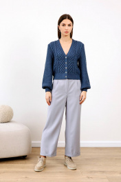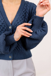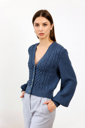 Кардиган короткий из мягкой пряжи для офисного и повседневного стиля Romgil РВ0104-ШЕ5 индиго