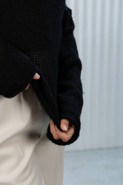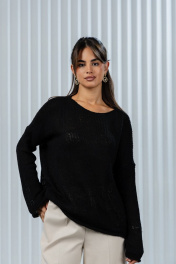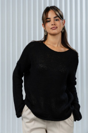 Этот модный черный джемпер станет идеальным выбором для тех, кто ценит комфорт и стиль! Изготовленный из мягкой и приятной на ощупь пряжи, он подарит вам тепло и уют в прохладные дни. Особенности: Оверсайз-крой — свободный и удобный, подходит для создания расслабленных и стильных образов. Ажурный вязаный узор — добавляет изысканности и лёгкости, делая джемпер универсальным для разных стилей. Насыщенный черный цвет — легко сочетается с джинсами, брюками, юбками и даже классическими блузками. Удлинённые рукава — обеспечивают дополнительный комфорт и тепло. Этот джемпер станет отличным дополнением вашего гардероба, идеально подходящим для повседневных прогулок, офиса или встреч с друзьями. Сочетайте его с любимыми аксессуарами, чтобы создать неповторимый образ!