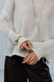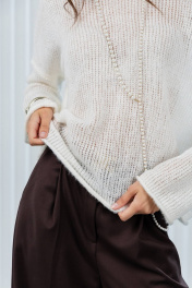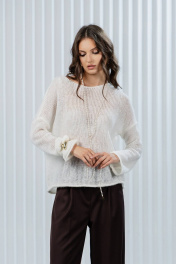 Этот модный молочный джемпер станет идеальным выбором для тех, кто ценит комфорт и стиль! Изготовленный из мягкой и приятной на ощупь пряжи, он подарит вам тепло и уют в прохладные дни. Особенности: Оверсайз-крой — свободный и удобный, подходит для создания расслабленных и стильных образов. Ажурный вязаный узор — добавляет изысканности и лёгкости, делая джемпер универсальным для разных стилей. Насыщенный молочный цвет — легко сочетается с джинсами, брюками, юбками и даже классическими блузками. Удлинённые рукава — обеспечивают дополнительный комфорт и тепло. Этот джемпер станет отличным дополнением вашего гардероба, идеально подходящим для повседневных прогулок, офиса или встреч с друзьями. Сочетайте его с любимыми аксессуарами, чтобы создать неповторимый образ!