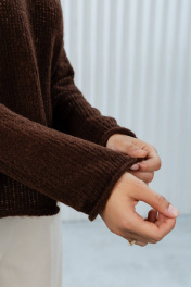 Этот модный шоколадный джемпер станет идеальным выбором для тех, кто ценит комфорт и стиль! Изготовленный из мягкой и приятной на ощупь пряжи, он подарит вам тепло и уют в прохладные дни. Особенности: Оверсайз-крой — свободный и удобный, подходит для создания расслабленных и стильных образов. Ажурный вязаный узор — добавляет изысканности и лёгкости, делая джемпер универсальным для разных стилей. Насыщенный шоколадный цвет — легко сочетается с джинсами, брюками, юбками и даже классическими блузками. Удлинённые рукава — обеспечивают дополнительный комфорт и тепло. Этот джемпер станет отличным дополнением вашего гардероба, идеально подходящим для повседневных прогулок, офиса или встреч с друзьями. Сочетайте его с любимыми аксессуарами, чтобы создать неповторимый образ!