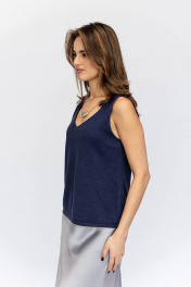 Обновите свой гардероб с этим элегантным трикотажным жилетом насыщенного темно-синего оттенка! Жилет выполнен из мягкого и приятного к телу материала, который идеально подчеркнет вашу индивидуальность и обеспечит комфорт в течение всего дня. Особенности: Фасон: Удобный крой с V-образным вырезом, который подходит для любого типа фигуры. Цвет: Глубокий индиго — универсальный и стильный оттенок, который легко сочетается с другими элементами гардероба. Материал: Мягкий трикотаж, который не стесняет движений и подходит для любого сезона. Длина: Укороченный жилет, который можно носить с юбками, брюками или джинсами. Для кого: Этот топ станет идеальным выбором для женщин, которые ценят комфорт и стиль. Он подойдет как для повседневной носки, так и для создания более официальных образов. Совет стилиста: Сочетайте жилет с юбкой-карандаш или классическими брюками для офисного образа, или с джинсами и кроссовками для повседневного стиля. Украшения с минималистичным дизайном дополнят ваш образ, придав ему изысканность.
