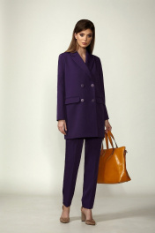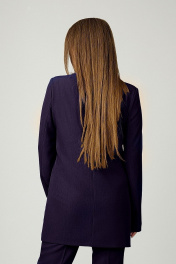 Жакет из костюмной ткани на подкладке. Жакет прямого силуэта с двубортной застежкой на 2 петли и пуговицы и одну потайную. По переду- прорезные карманы с клапанами. Воротник-с отложными лацканами пиджачного типа, двухшовные, длинные. Спинка-без швов.