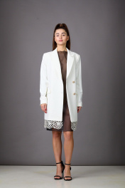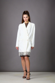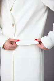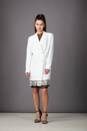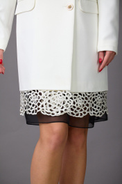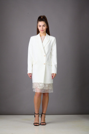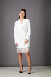 Ах , какая находка - пиджак женский с кружевом ! Молочный теплый цвет пиджака прекрасно сочетается с изысканным кружевом по низу. Пиджак прямого силуэта с двубортной застежкой и прорезными карманами с клапанами. Воротник-с отложными лацканами пиджачного типа. Рукава двухшовные, длинные. Только представьте, как изысканно будет смотреться это нежное изделие в комплекте с атласным платьем, юбкой или как представлено на фото с платьем из вуали! А можно носить просто, как самостоятельную вещь! Длина жакета 44-48р - 82см +10см кружево, 50-54р- 84см+10см кружево