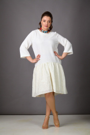 Хотите улучшить настроение? Тогда представляем эффектное платье из шикарного жатого хлопка с вышивкой и плательного креша! Невероятно красивое, комфортное платье станет вашим пропуском в лето! Верхняя часть платья из плательного стрейчевого креша , нижняя часть со сборкой добавит легкости. Изюминка платья-разница в длине между передом и спинкой. Рукава трехчетвертные. По спинке - средний шов, молния. Cкрасьте момент с Rosheli!