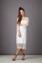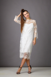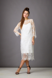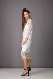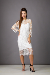 Платье из кружева прямого силуэта с вытачками по переду. Рукава трехчетвертные. Нижнее платье- комбинация из плотного атласа. Крой по косой. Нижнее платье можно использовать как самостоятельное изделие.