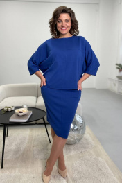 Джемпер и юбка из трикотажа с карманами и поясом Rumoda 2093 синий
