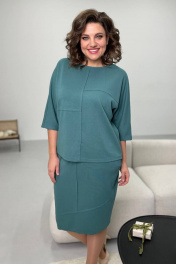 Юбка женская прямого силуэта из трикотажной ткани.По переду расположены карманы с настрочными швами с открытыми срезами. Задняя половинка юбки со средним швом ,заканчивающимся разрезом,какеткой и накладными карманами. Верх юбки оформлен поясом ,в пояс вставлена резинка. Длина издели по боковому шву с учетом пояса 60±1 см