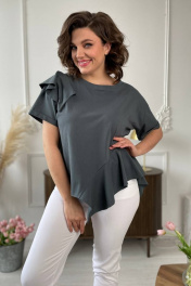 Джемпер в летнем стиле из трикотажа с валаном Rumoda 2122 графит