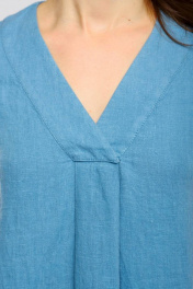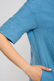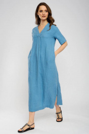 Платье свободного А-силуэта, в стиле «бохо», длина maxi. Перед цельнокроеный, с U-образным вырезом, переходящим во встречную складку. Горловина округлой формы с отрезной широкой планкой, переходящей на перед и на запах. Спинка разрезная, со средним швом. Рукав рубашечный, одношовный с широкой отрезной отделкой. В качестве отделки проложены отделочные строчки по всем швам изделия. По низу изделия и по низу рукава широкая декоративная отделочная строчка Приобретая одежду из льна Вы заботитесь о своей коже и здоровье организма. Ружана создает для Вас натуральные и модные изделия в которых комфортно в любую погоду! Приятных Вам покупок! Размеры сдвоенные 42-44, 46-48, 50-52, 54-56