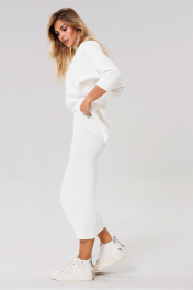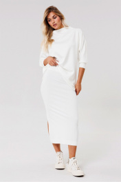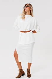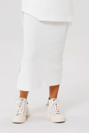 Трикотажная юбка с разрезом и поясом для повседневной носки PRATA wear S006 белый