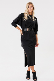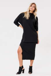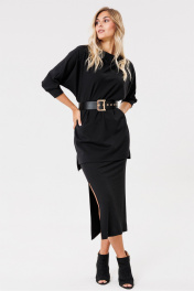 Черная трикотажная юбка с разрезом и поясом PRATA wear S006 черный
