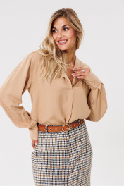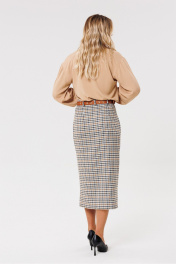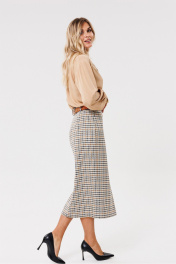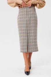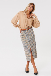 Круглогодичная классическая юбка из текстиля с шлицей PRATA wear S017 бежевый
