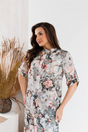 Серый костюм из блузона и брюк с принтом для повседневных образов SandyNa 130544 цветы+серый