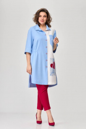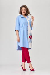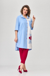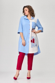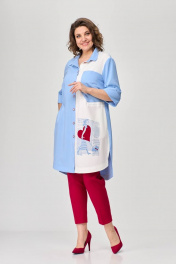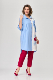 Тройка летний комплект с шазюблем и зауженными брюками SandyNa 13591 голубой+красный