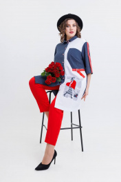 Костюм женский летний из текстиля с шазюблем и брюками на резинке SandyNa 13591 сине-красный