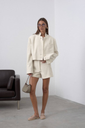 Шорты короткие, слегка расширенные к низу. На поясе расположены шлёвки. На задней половине шорт расположены накладные карманы. Шорты минималистичные, прекрасно подходят к любому образу.