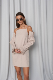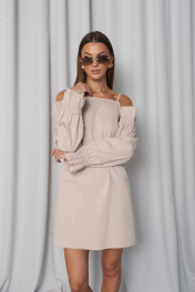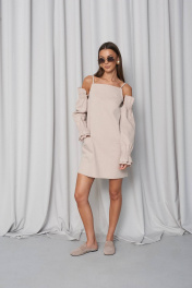 Сарафан прямого свободного силуэта, с большими функциональными накладными карманами по переду и нагрудными вытачками. Сарафан с регулирующими тонкими бретелями и объёмными съёмными(крепятся на пуговицах) рукавами на резинке (по низу и верху рукава). Всё края сарафана необработанные ( слегка бахромистые). Длина(42\44\46\48)–86\88\90\92см(регулируется бретелями+\3см) Длина рукава (42\44\46\48р)- 58\58\59\59см Ширина груди по переду(42\44\46\48р)-43\45\48\50см Ширина бёдер по переду (42\44\46\48р)-48\50\52\54см