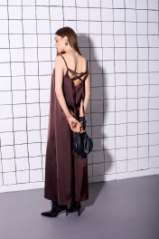 Платье прямого силуэта, длинное, на регулируемых бретелях. На переде платья расположен декоративный лиф с кружевом, на спинке вырез с фиксирующим шнурком. Замеры: длина: 120см