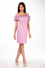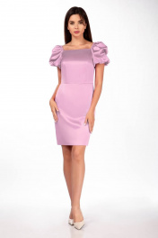 Нарядное платье из плотного атласа приталенного силуэта. Отрезное по линии талии, приталивается талиевой и нагрудной вытачкой. Рукав втачной, на подкладке, задрапирован красивыми складками. По окату рукава вставлена резинка, которая позволяет опустить линию декольте. Застежка по спинке на потайную молнию. Длина платья по спинке от плеча до талии 39 +/- 1 см Длина юбки 50 +/- 1 см