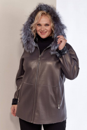 Дубленка двухсторонняя из искусственной кожи с меховой отделкой Shetti 2158 баклажан