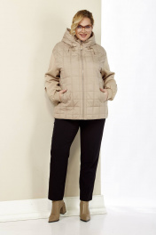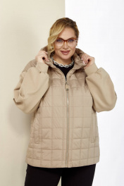 Бежевая демисезонная куртка на кулисе с капюшоном Shetti 2184 бежевый
