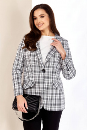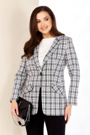Эффектный жакет из текстильной ткани станет отличным дополнением вашего гардероба. Жакет женский удлиненный, полуприлегающего силуэта с центральной бортовой застежкой на пуговицу, на подкладке. Перед жакета с боковыми рельефными швами от проймы до низа изделия. Воротник отложной пиджачного типа. Перед с прорезными карманами и клапаном. Рукав длинный, втачной, двух шовный. По низу рукава шлица и потайная застежка-обманка на 3 пуговицы. Спинка с боковыми рельефными швами от линии проймы до линии низа и со средним швом. Этот жакет отлично сочетается с различными вариантами одежды, он отлично смотрится с брюками и джинсами, прямыми юбками или длинными платьями. Жакет представлен в модной расцветке. Длина рукава от плечевого шва 61 см, длина изделия по центральному шву спинки 71 см.