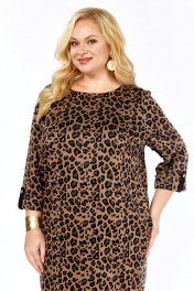Силуэт полуприлегающий. Рукава втачные, одношовные, внизу с отворотами, закреплённые патой из отделочной ткани с застёжкой на пуговицу. Длина рукава 45см. Горловина закруглённая, на обтачке, которая закреплена отделочной строчкой. Перед с нагрудными вытачками. В боковых швах платья на уровне линии бёдер выполнены потайные карманы. Внизу боковых швов выполнены разрезы, закреплённые патой из отделочной ткани с застёжкой на пуговицу. Длина платья по спинке105 см. Платье выполнено из трикотажного полотна. 60 р.- ПОГ 64, ПОБ 66