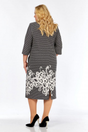 Силуэт прилегающий. Рукава втачные, одношовные, внизу с разрезом. Длина рукава 44 см. Горловина закруглённая, на обтачке. Перед с нагрудными вытачками. Спереди на уровне бёдер выполнены прорезные карманы с листочкой. Спинка со средним швом, внизу с разрезом. Длина платья по спинке 112 см. Платье выполнено из трикотажного полотна. 60 р. – ПОГ 62,, ПОБ 65