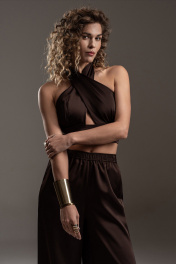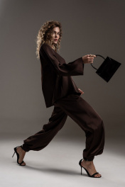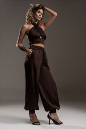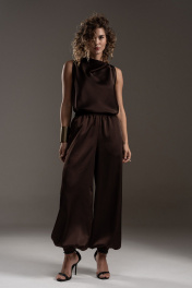 Брюки - "алладины", широкие, с поясом на резинке. Низ брюк собран на резинку. Карманы в боковых швах. Шелковистая ткань делает образ стильным и завораживающим. Брюки "алладины"- современный тренд благодаря сочетанию комфорта и стиля. Длина брюк с поясом +- 106 см Ширина брюк по низу до резинки в 44 р.+- 69 см. Обхват резинки по низу брюк в 44 р.: +-25 см. Параметры брюк в готовом виде в 44 р.: обхват талии 68 см, обхват бедер 102 см.