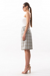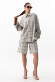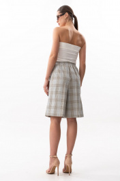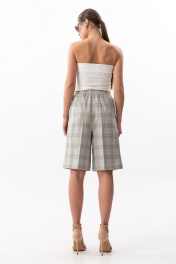 Шорты прямого свободного силуэта. Пояс на резинке, по переду боковые наклонные карманы. Задняя часть с внутренними карманами с листочкой. Длина шорт по боковому шву с поясом 59 см. Параметры брюк в готовом виде в 44 р.: обхват талии +-66 см (с резинкой ), обхват бедер 108 см. На фото: блузка S-7632, жакет S-2635