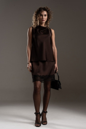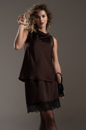 Юбка мини, прямого силуэта, с резинкой по талии. Линия низа декорирована "французким" кружевом. Изделие выполнено из ткани в глубоком шоколадном оттенке с деликатным сатиновым блеском. Длина юбки с поясом по боковому шву в 42-44-46 р.: 50 см. вместе с кружевом. Длина юбки с поясом по боковому шву в 42-44-46 р.: 54 см. вместе с кружевом. Параметры в 44 р.: ОТ 66 см., ОБ 102см.