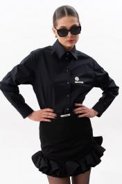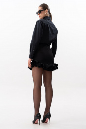 Стильная юбка мини прилегающего силуэта, с фигурной линией низа с воланом. Выполнена из костюмной ткани, на поливискозной подкладке. Пояс-обтачка, в боковом шве застежка- потайная молния. На передней части юбки настрочена декоративная бирка. Длина юбки по середине переда и задней части +-44 см., по боковому шву +-39 см. с воланом. Объем талии в 44 размере 74 см. Объем бедер в 44 размере 96 см. На фото: блузка S-7632