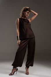 Блузка прямого кроя с асимметричной горловиной, без рукавов. Блузка выполнена из шелковистой ткани с атласным блеском. Длина блузки по центру спинки 60 см.