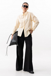 Блузка женская, актуального кроя, с отрезной кокеткой. Рукав втачной, притачная манжета с планкой застегивающейся на пуговицу. Воротник стояче-отложной с отрезной стойкой. Линия низа фигурная. На левой полочке декоративная бирка. Стильная, современная блузка легко встраивается в современный гардероб для любительниц office и old money core. Длина по центру спинки 69 см. Длина рукава 60 см. Ширина плеча 15 см. Параметры в готовом виде в 44 р.: обхват груди 98 см, обхват бедер 104 см.