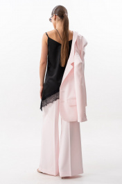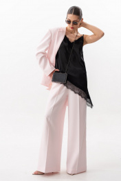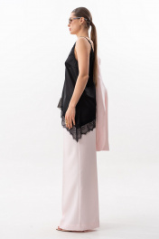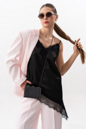 Топ "комбинация", свободного силуэта, с нагрудными вытачками. Линия декольте переда и низа декорированы "французским" кружевом. Линия низа ассиметричная. Регулируемые бретели обеспечивают идеальную посадку и комфорт при носке. Шелковистая ткань делает образ стильным и авораживающим. Длина топа по правому боковому шву от проймы +- 33 см. Длина топа по левому боковому шву от проймы +-65 см. Параметры в готовом виде в 42-44-46 р.: обхват груди 90-94-98 см, обхват обхват бедер 98-102-106 см. Параметры в готовом виде в 48-50-52 р.: обхват груди 102-106-110 см, обхват обхват бедер 110-114-118 см. На фото: жилет S-2636, костюм S-1635