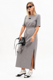 Комплект из мягкого трикотажного полотна - юбка миди и джемпер с коротким рукавом. Юбка прямого силуэта, с разрезом по боковому шву и поясом с резинкой. На полочке джемпера декор в виде нашивки с лого. Горловина оформлена бейкой из основного полотна. Комплект идеально подходит для создания стильных многослойных образов в прохладное время года. Универсальный крой делает трикотажный комплект незаменимой базой в вашем гардеробе. Длина джемпера по центру спинки 60 см. Длина рукава 29 см. Длина юбки по боковому шву с поясом 97 см. Длина разреза от низа 45 см.