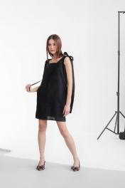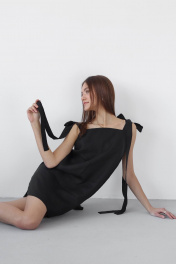 Платье на регулируемых завязках прямого кроя. Длина по спинке 90 см, - Только деликатная стирка 40 градусов - Не использовать отбеливатели - Изделие вывернуть наизнанку