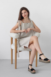 Платье на регулируемых завязках прямого кроя. Длина по спинке 90 см, - Только деликатная стирка 40 градусов - Не использовать отбеливатели - Изделие вывернуть наизнанку