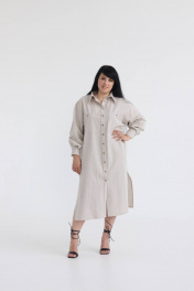 Платье рубашка свободного оверсайз из льна SK Brand SK7153 серо-бежевый