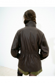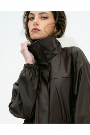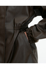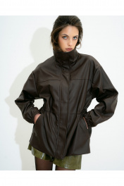 Женская парка в насыщенном шоколадном цвете, выполнены из экокожи. Это парка с высоким воротником – стойкой и застёжкой на молнии. Декоративные швы придают ей оригинальности, а свободной крови обеспечивает комфорт и свободу движений. Рукава на резинке, а талия на кулисе. Ветрозащитная планка на кнопках. Порезанная карманы с листочкой. Длина изделия: 70 см. Длина рукава: 76 см. Ширина на уровне груди: 56 см.
