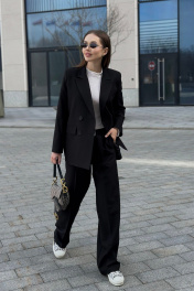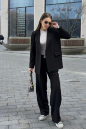 Брюки с складками и резинкой из текстиля с шерстью Skipper Design 617 черный